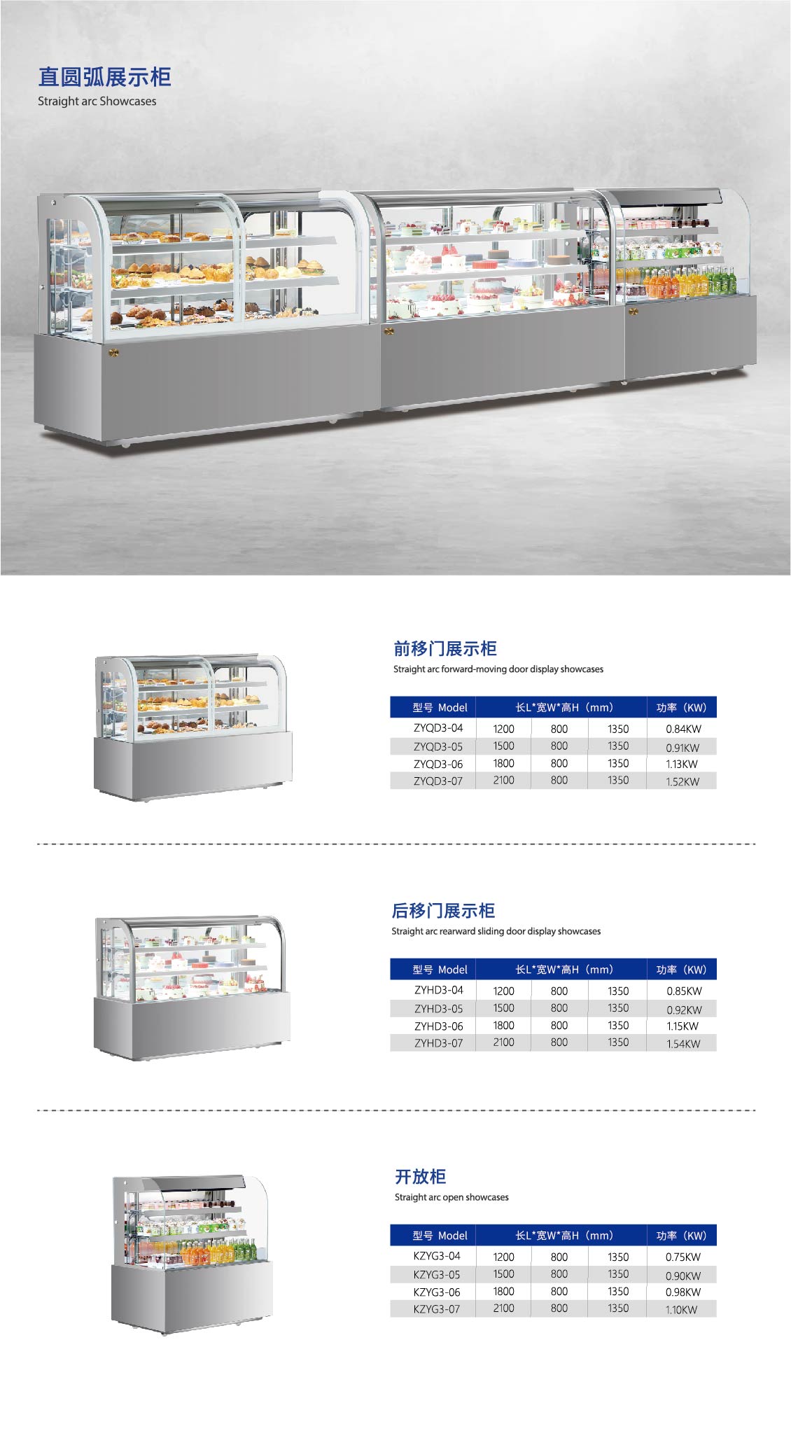 三層直圓弧前移門蛋糕柜
