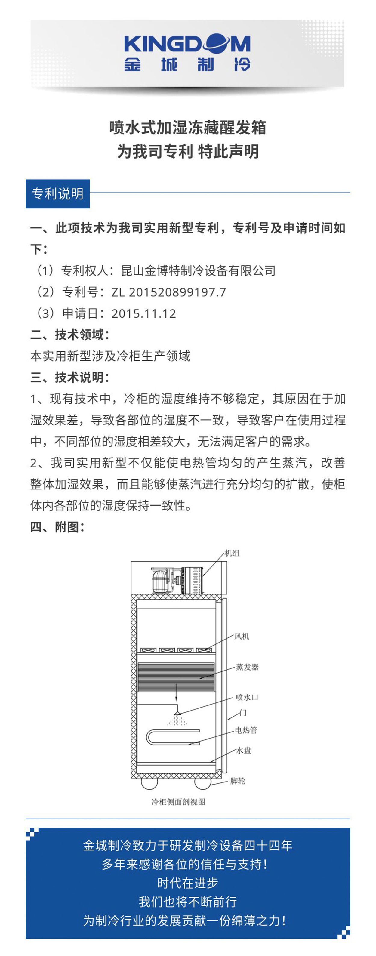 噴水式加濕凍藏醒發(fā)箱 為我司專利 特此聲明