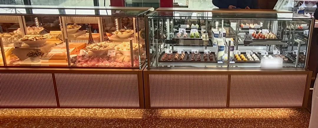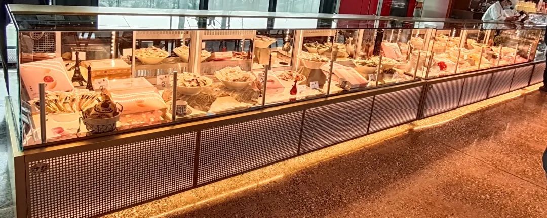 圖右側(cè)設(shè)備為蛋糕冷藏柜,金城制冷設(shè)計(jì)生產(chǎn)